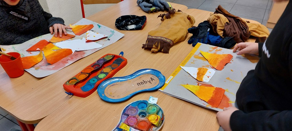 Es wurde nicht nur getrommelt, sondern auch viel gelacht, performt, Kostüme und Kulissen gestaltet und Sprecherrollen eingeübt.