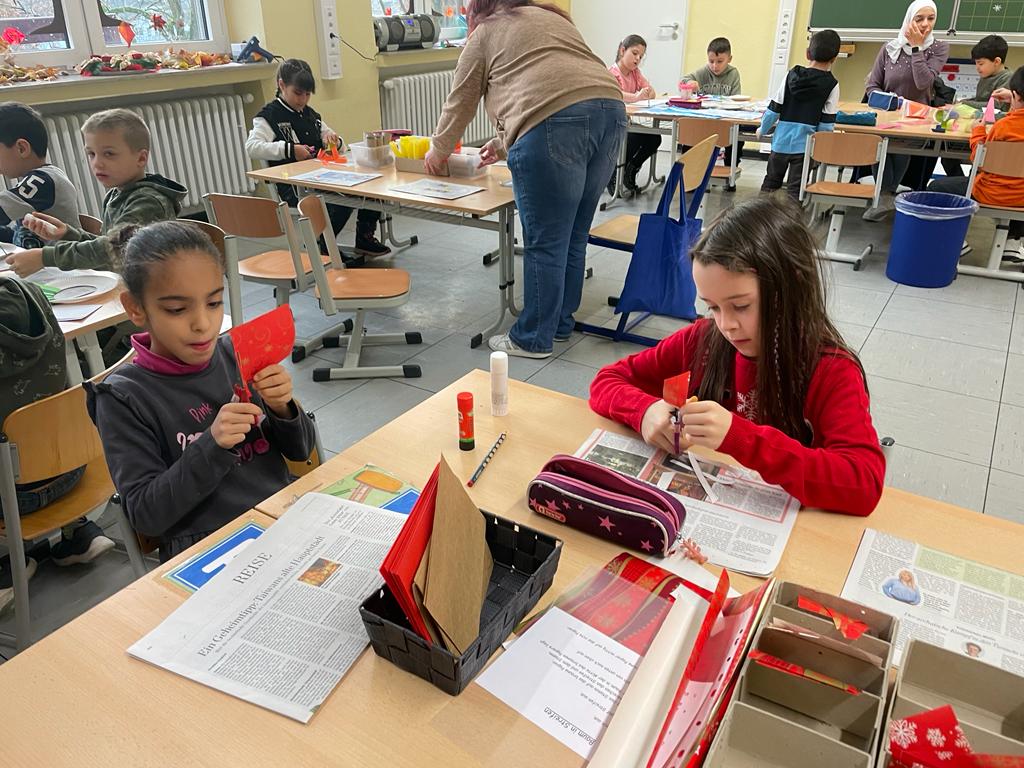 Am 28.11.2023 versammelten sich die Bergschüler samt ihren Eltern in der Bergschule zum gemeinsamen Adventsbasteln. Es wurde fleißig ausgeschnitten, geklebt, gefaltet und bemalt, denn dieses Jahr wurden die wundervollen Weihnachtskarten und Christbaumschmuck auf dem Weihnachtsmarkt in Wetter verkauft. Aber auch Schmuck für die Fenster und dem Tannenbaum am Eingang der Bergschule wurde gebastelt. Zur Freude der Kinder gab es leckere Stutenkerle, die vom Förderverein gespendet wurden.