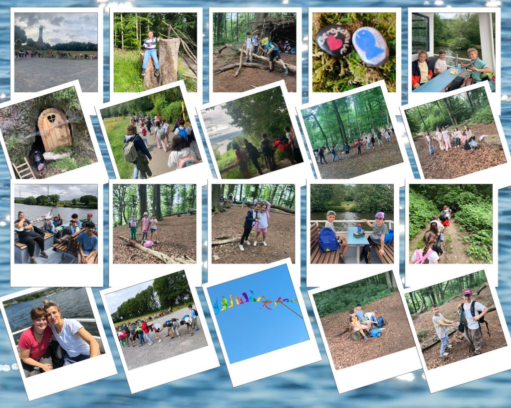 Am 23.06.2025 trafen sich die Klassen 2a und 2b mit ihren Klassenlehrerinnen Frau Sittart, Frau Kamplade, der Integrationskraft der Klasse 2b und der Sozialpädagogin Frau Rößler auf dem Harkortberg. Dort erhielten die Kinder einen Zettel mit verschiedenen Challenges, die während der Wanderung nach Herdecke zu bewältigen waren. Direkt auf dem Parkplatz mussten die Kinder eine lange Menschenschlange bilden. Am Aussichtspunkt nahe des Kletterwaldes mussten mit Ferngläsern die Windräder am Horizont gezählt werden. Zwischen 11 und 38 Windrädern wurden dort erspäht.
