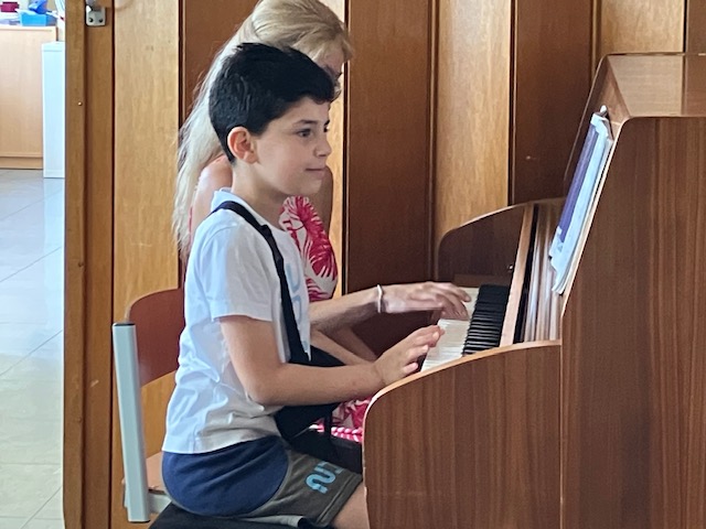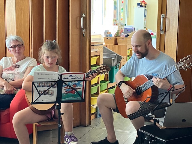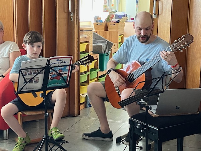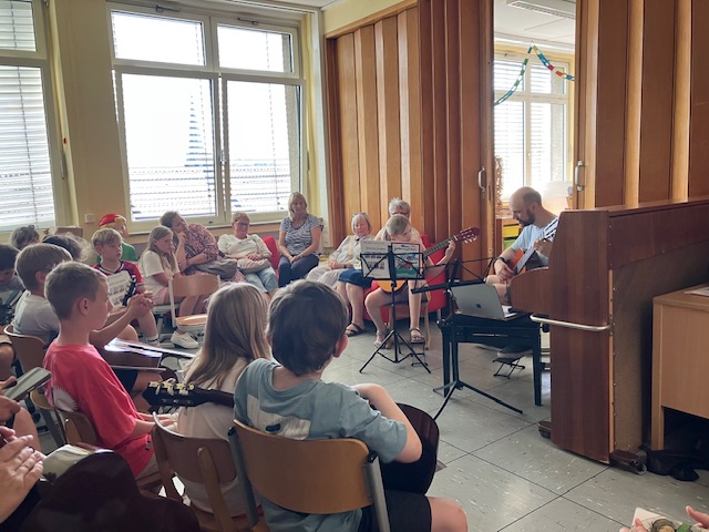 Seit einigen Jahren findet an der Bergschule nach dem Unterricht der Instrumentenunterricht statt. Dazu kommen ein Gitarrenlehrer und eine Klavierlehrerin in die Schule und interessierte Schülerinnen und Schüler können alleine oder in Kleingruppen das Instrument erlernen.
