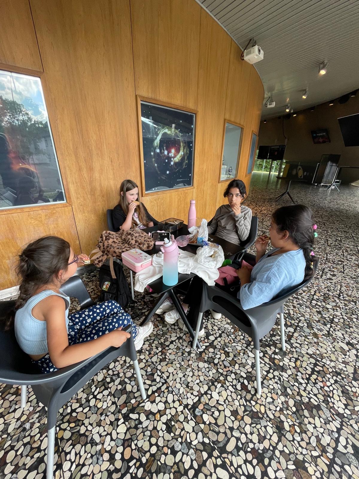 Auf dem Außengelände rund um das Planetarium frühstückten die Kinder bevor es endlich los ging. Die Weltraumforscher der 3a waren ganz schön aufgeregt, bekamen ihre Plätze in der Planetariumskuppel zugewiesen und dann startete die „Show“.