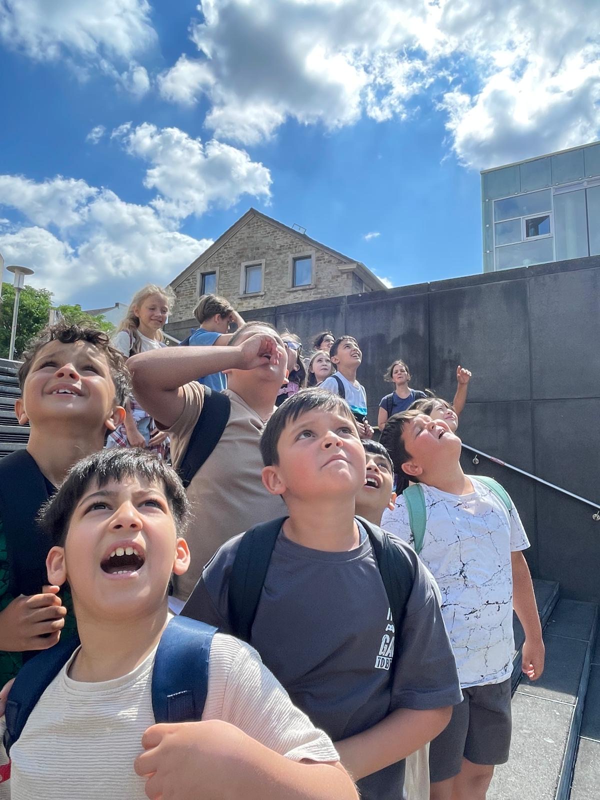 Kurz vor dem Ende des Schuljahres stand für die Klasse 3a noch ein toller Ausflug auf dem Programm. Gemeinsam mit den Lehrerinnen Frau Stüwe und Frau Schäfer machte sich die Klasse auf den Weg in das Planetarium in Bochum, wo das Thema „Abenteuer Planeten“ auf dem Programm stand. Nach der Fahrt mit Zug und Straßenbahn trafen wir bei angenehmen Temperaturen am Planetarium ein.