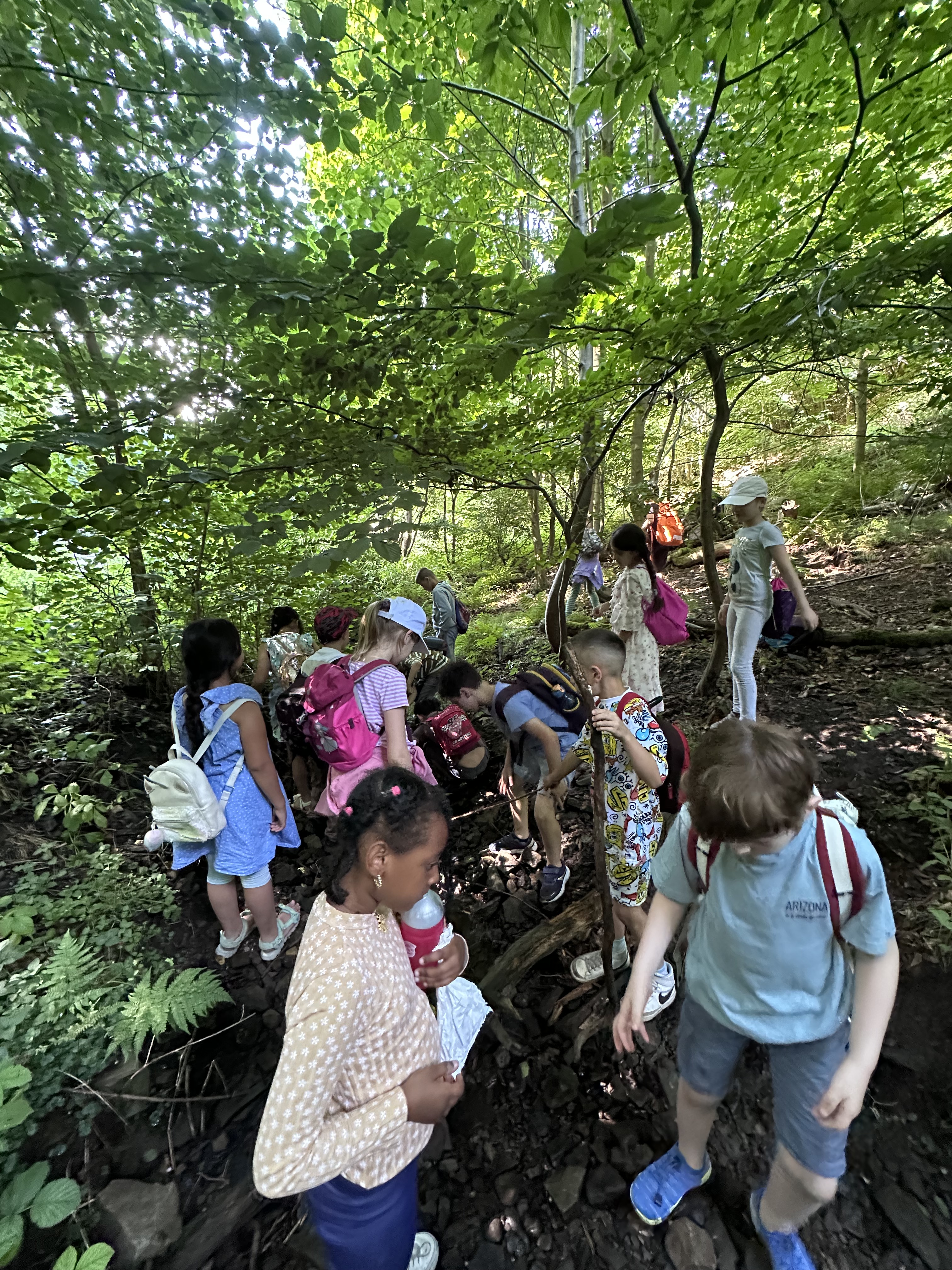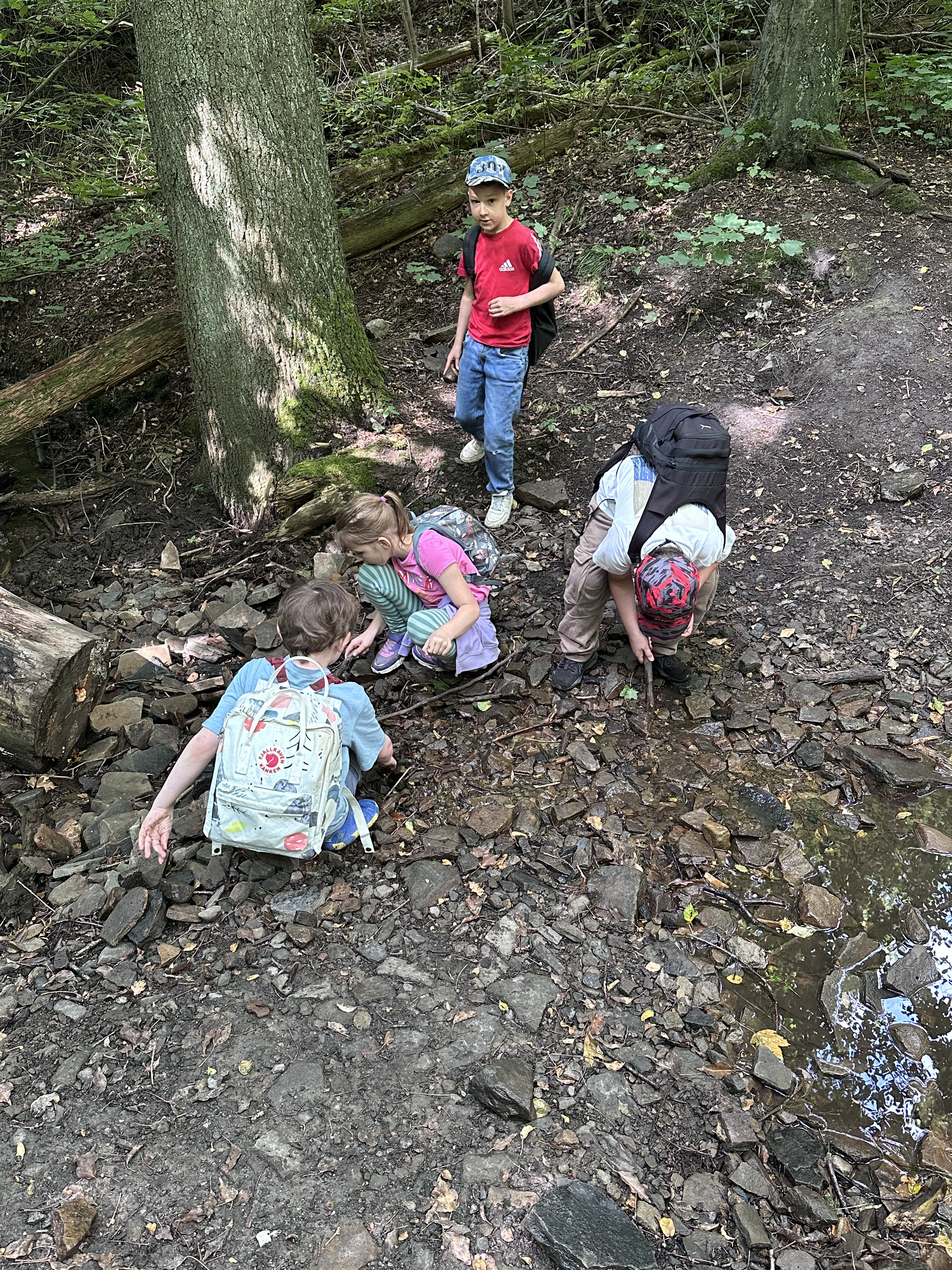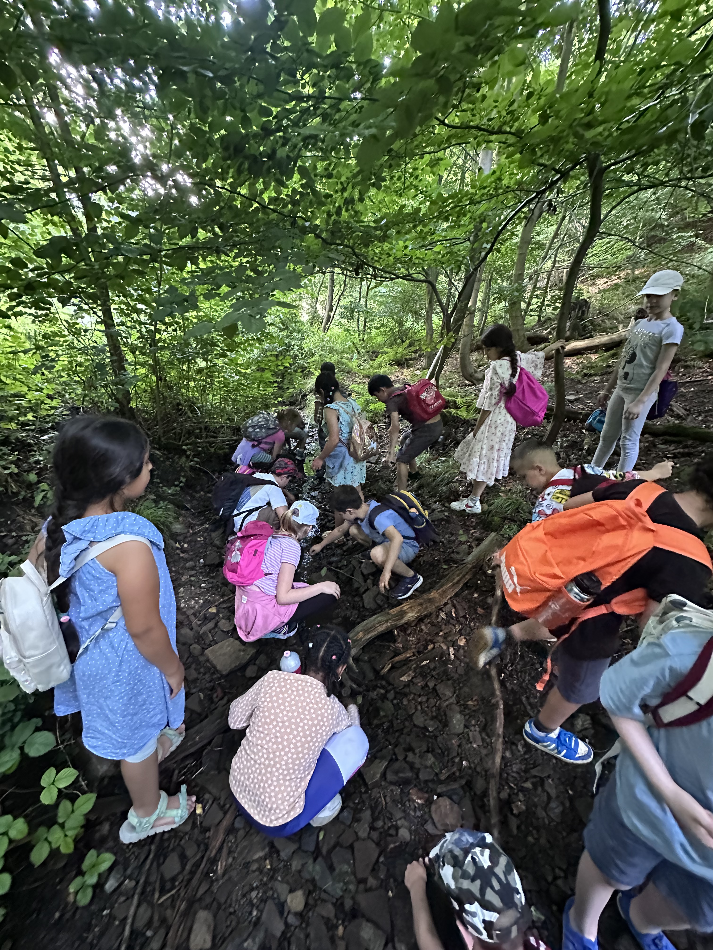 Auf Grund der Hitze der vergangenen Tage stand allerdings nur noch in einigen Senken das Wasser. Das verstand die 2b als Auftrag und verhalf dem Schnodderbach zurück zum Fließgewässer. Die Kinder gruben Kuhlen, schafften Steine aus dem Weg, ließen Blattschiffchen fahren und freuten sich über das fließende Wasser.