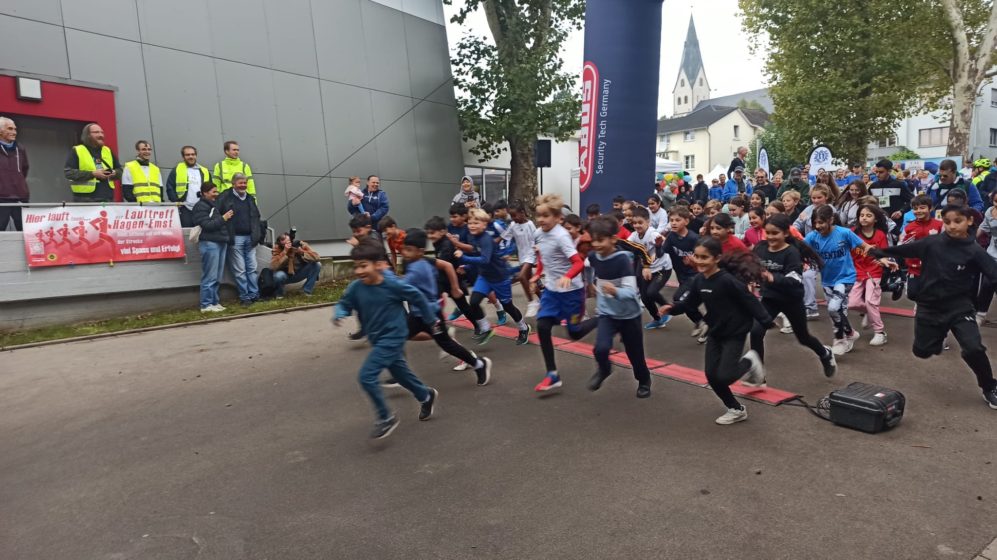 Nach einem kurzen, aber effektiven Aufwärmprogramm (man munkelt, es wurden ein paar Tanzschritte eingebaut) fiel um 9:50 Uhr das Startsignal. Und dann ging es los: unsere Läuferinnen und Läufer sprinteten mit Feuereifer los – angefeuert von Eltern, Lehrkräften und vielen begeisterten Zuschauerinnen und Zuschauern.