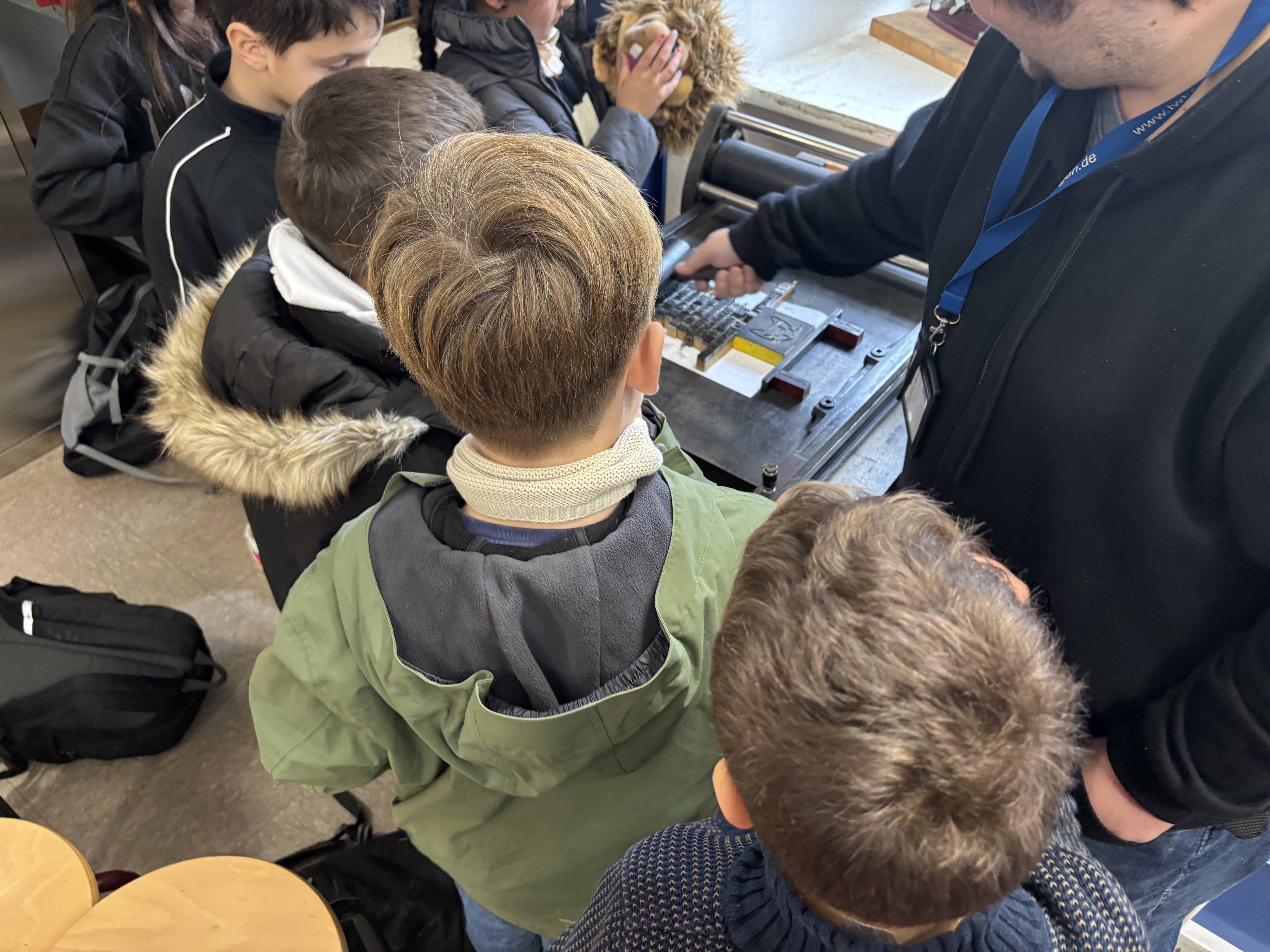 Im zweiten Kurs „Buchdruck“ ging es um Lettern, Druckpressen und jede Menge Fingerspitzengefühl. Die Kinder setzten ihren Namen aus kleinen Buchstaben zusammen und druckten ihn auf eine Karte – ganz wie früher.