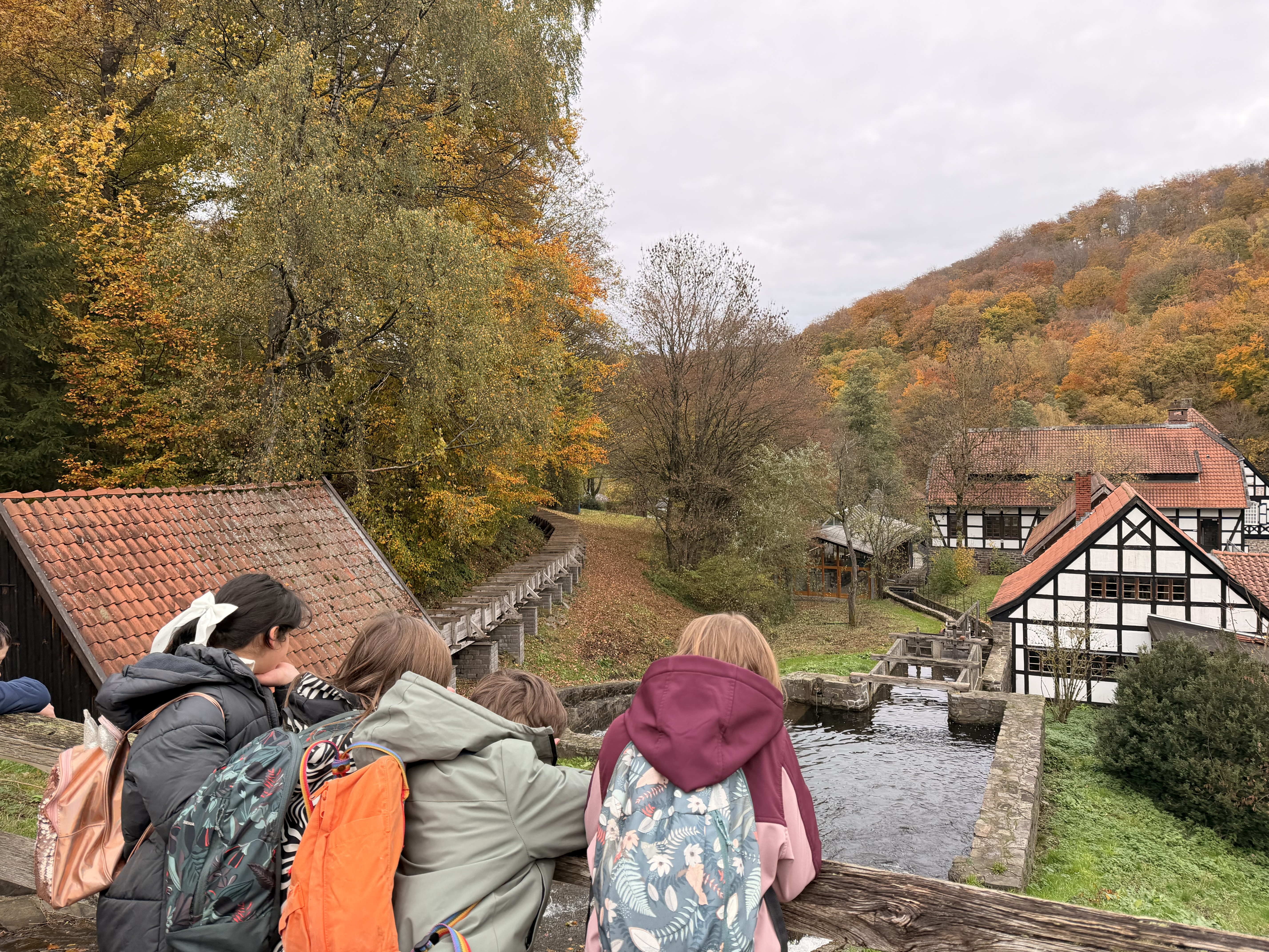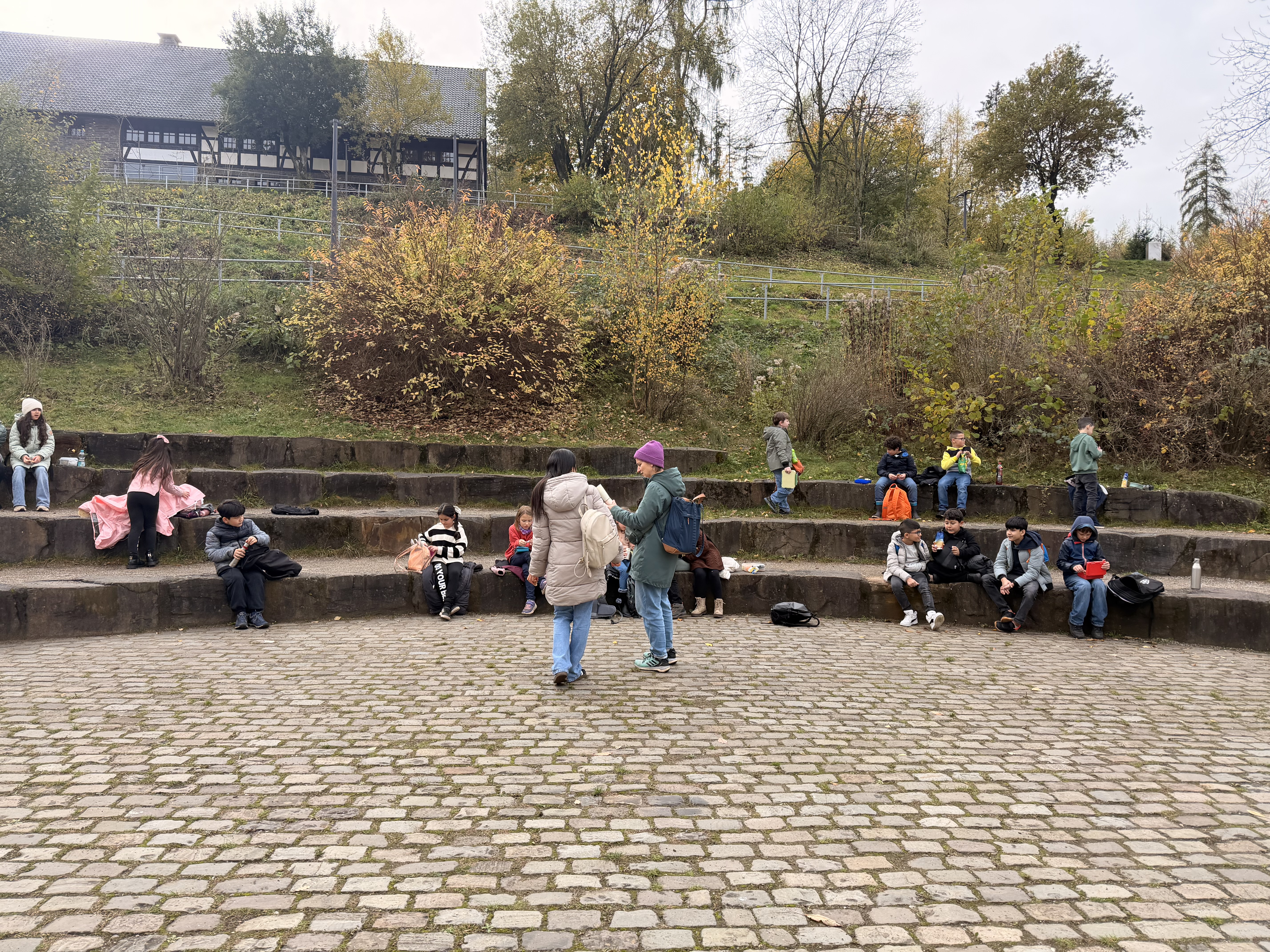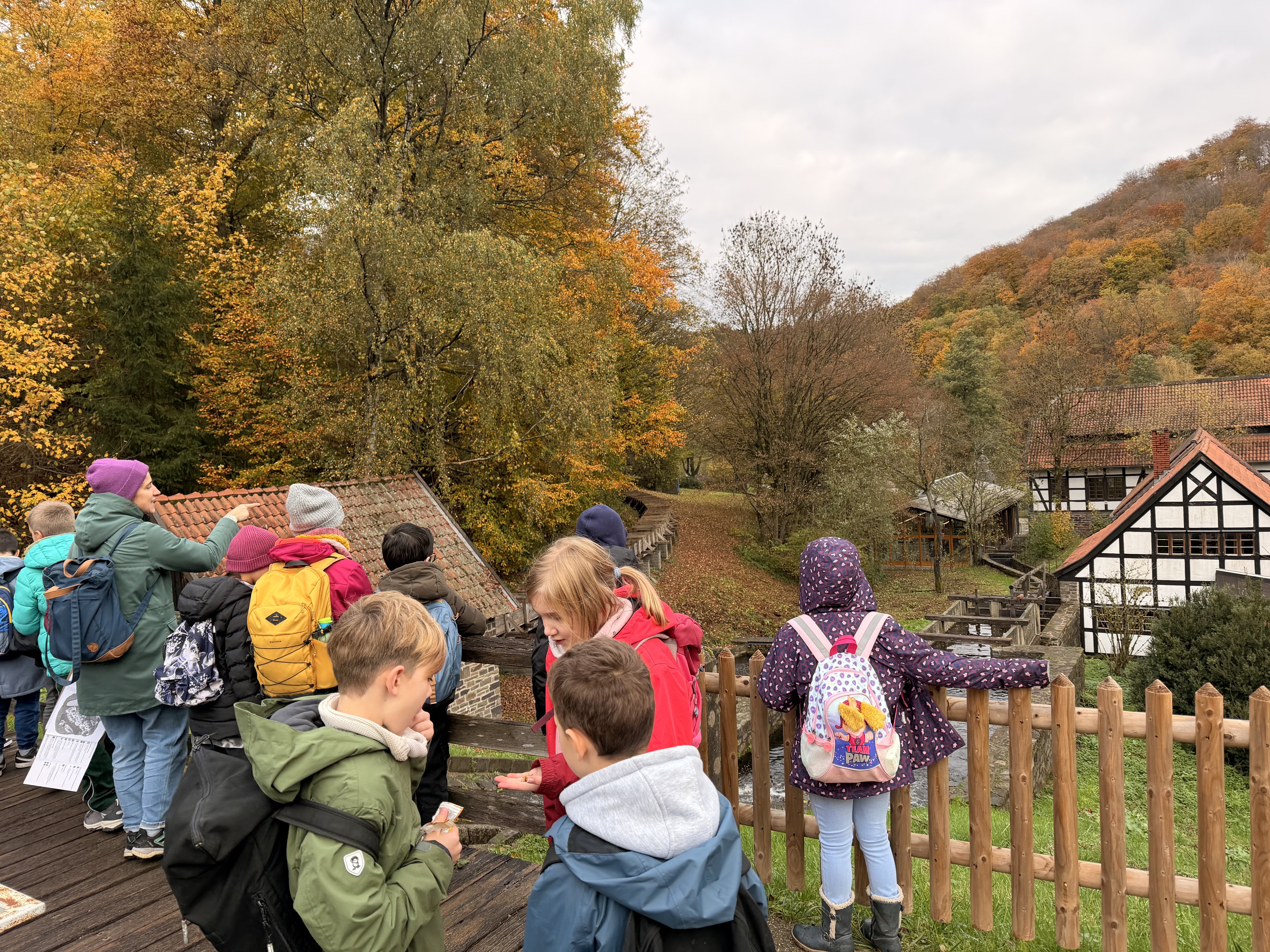 Am Mittwoch, den 29. Oktober, hieß es für unsere dritten Klassen: Rucksäcke aufsetzen, gute Laune einpacken – und los geht’s! Früh am Morgen machten wir uns mit den öffentlichen Verkehrsmitteln auf den Weg ins Freilichtmuseum Hagen. Die Kinder waren aufgeregt wie kleine Entdecker vor einer Schatzsuche. Viele der Kinder waren bisher noch nie mit dem Zug nach Hagen gefahren, so dass das erste Abenteuer bereits am Bahnhof in Wetter begann.