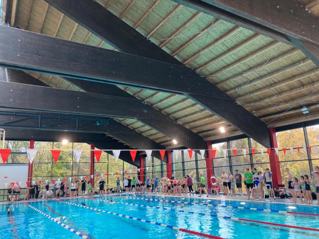 Die Schwimmhalle war erfüllt von jubelnden Zuschauern, die alle Schwimmenden lautstark anfeuerten.