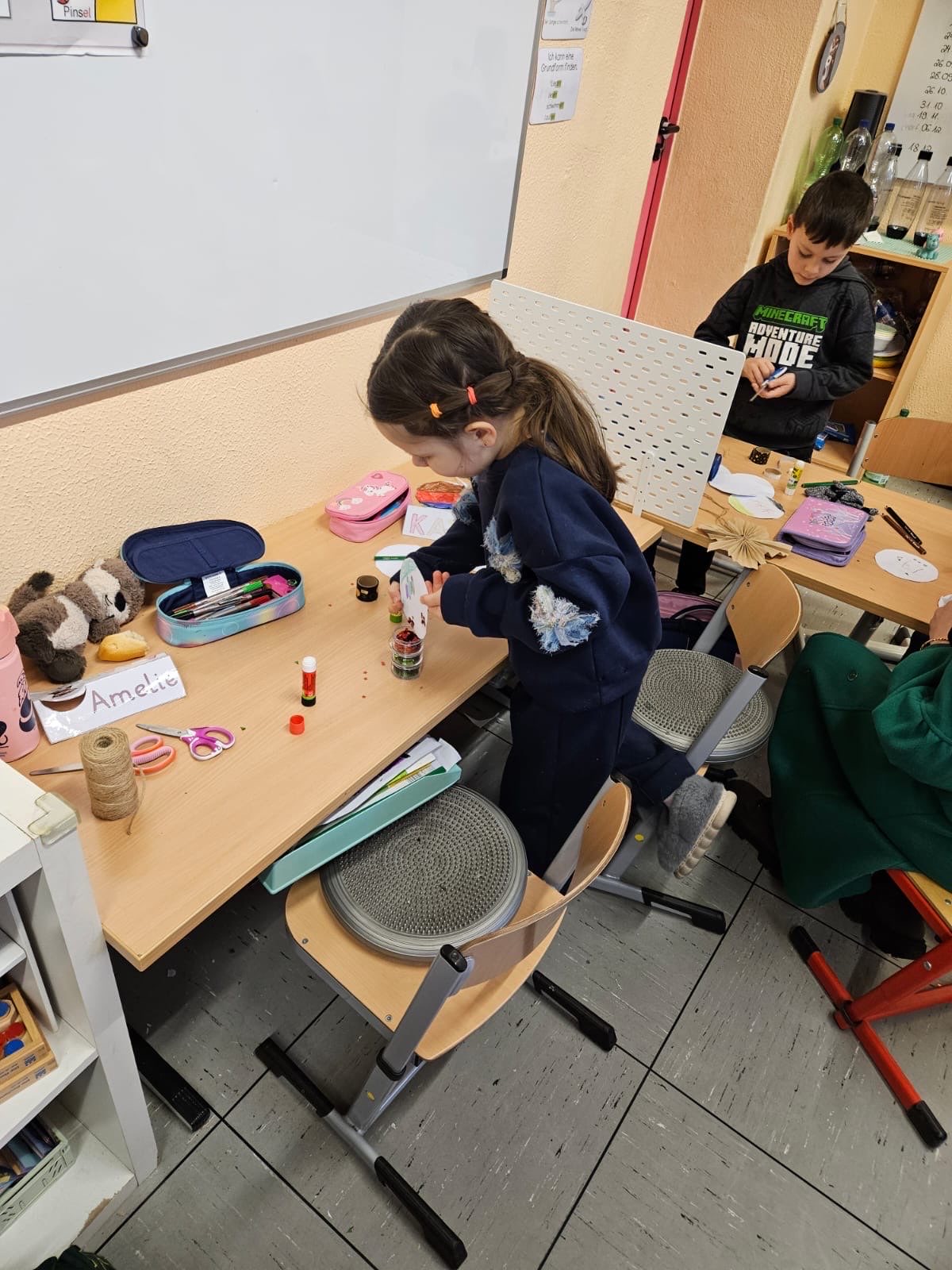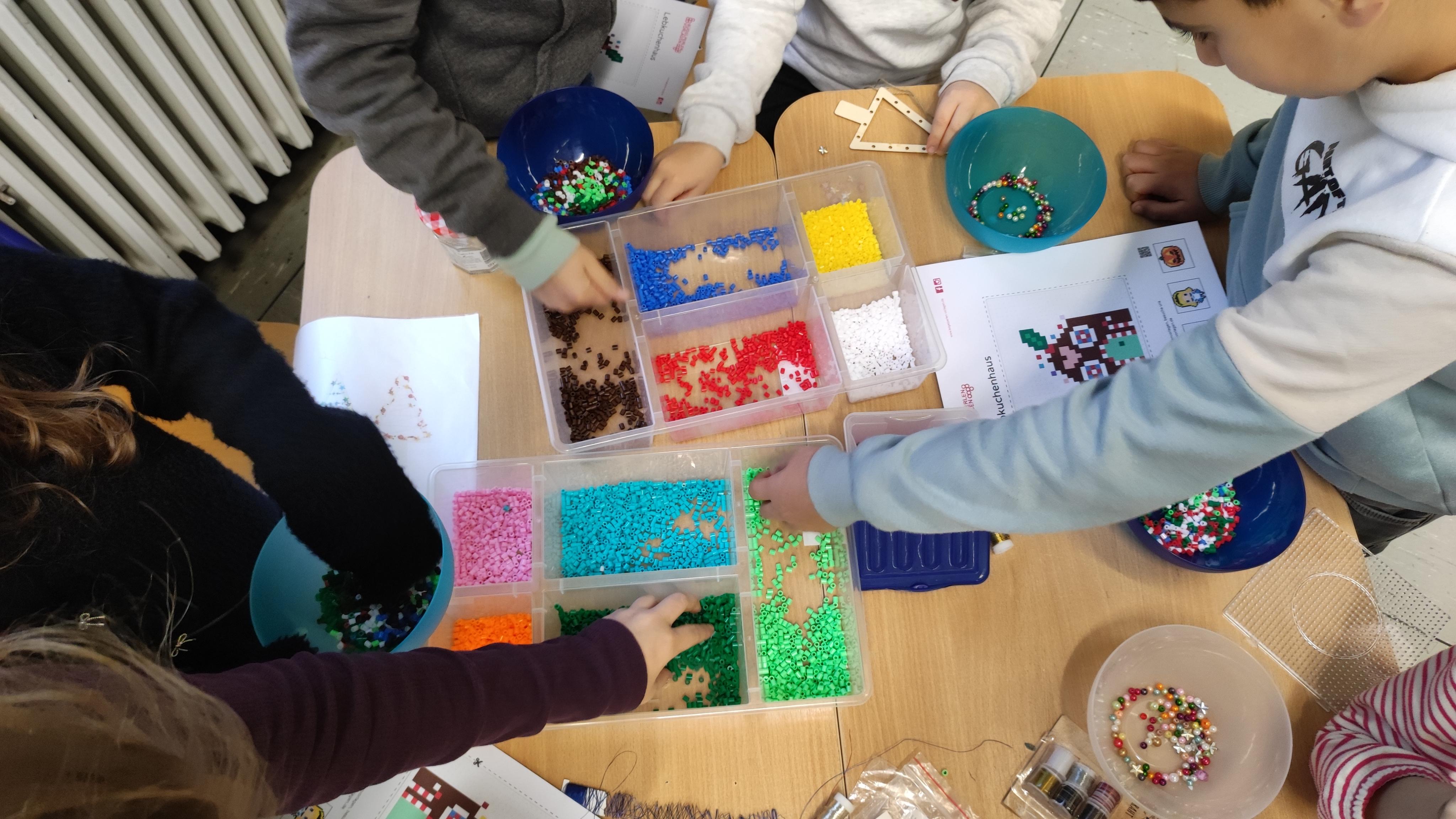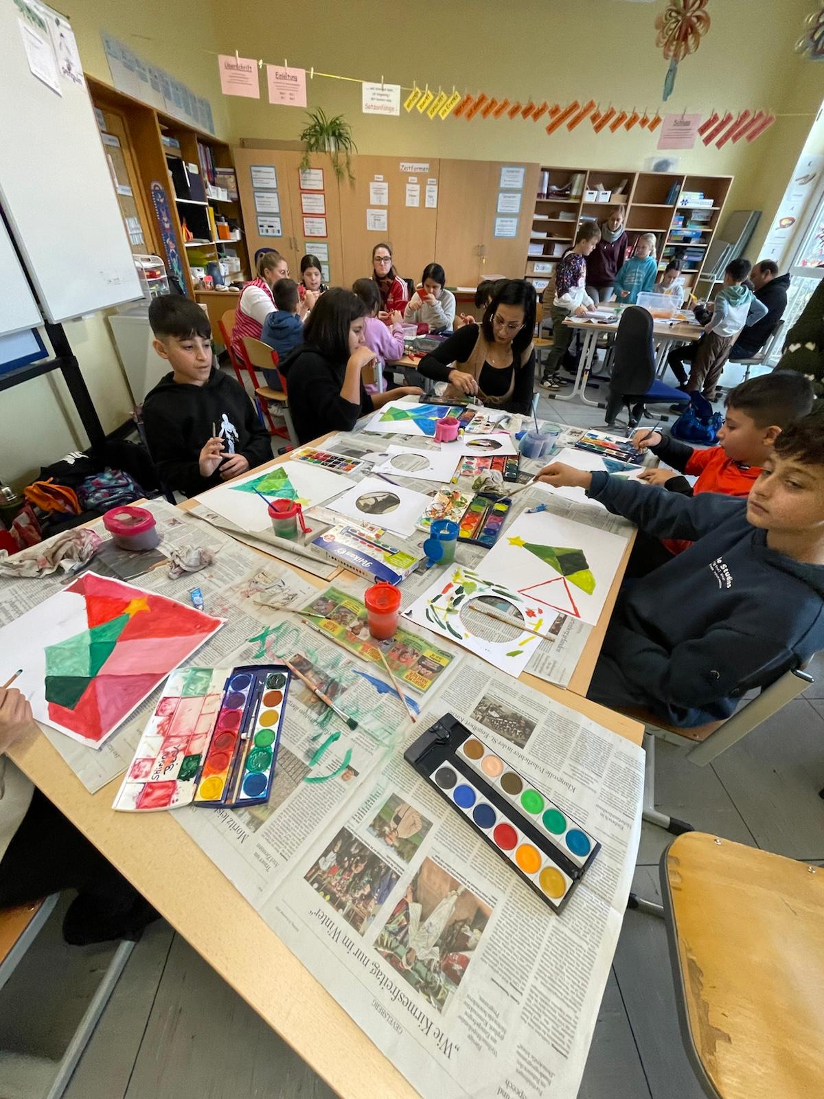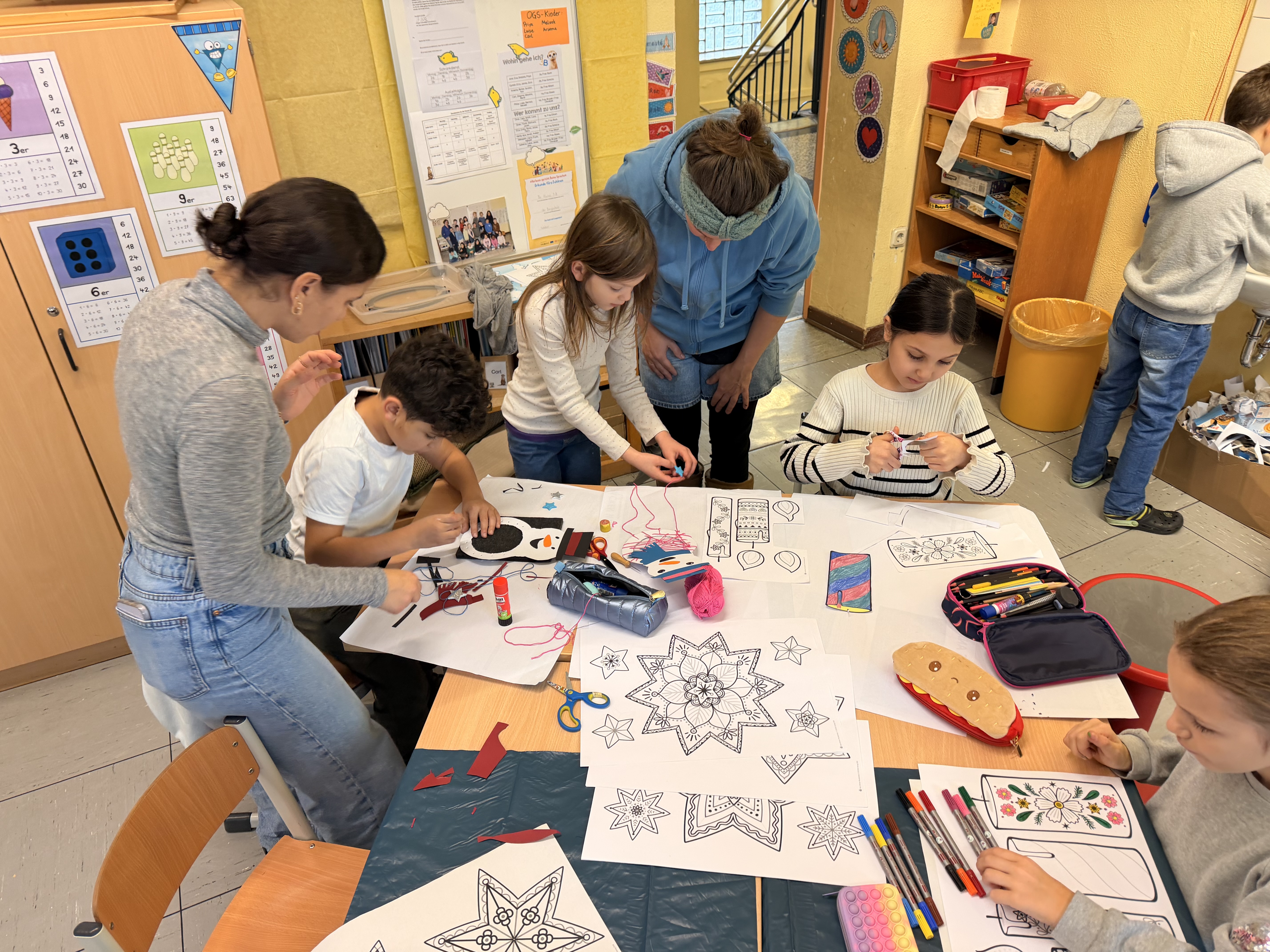 Die Basteltische in allen Klassenräumen verwandelte sich in ein wahres Paradies für Bastelfreunde. Die verschiedenen Stationen boten eine Vielzahl von Möglichkeiten: Ob liebevoll gestalteter Schmuck für den Tannenbaum im Foyer der Bergschule, bunte Fensterdekoration für die Klassenräume oder originelle Geschenke für die Eltern – die Ideen sprudelten nur so aus den kleinen Köpfen. Besonders beliebt waren alle Projekte mit Glitzer und anderen Materialien, die nicht jeden Tag in den Klassenräumen zu finden sind.