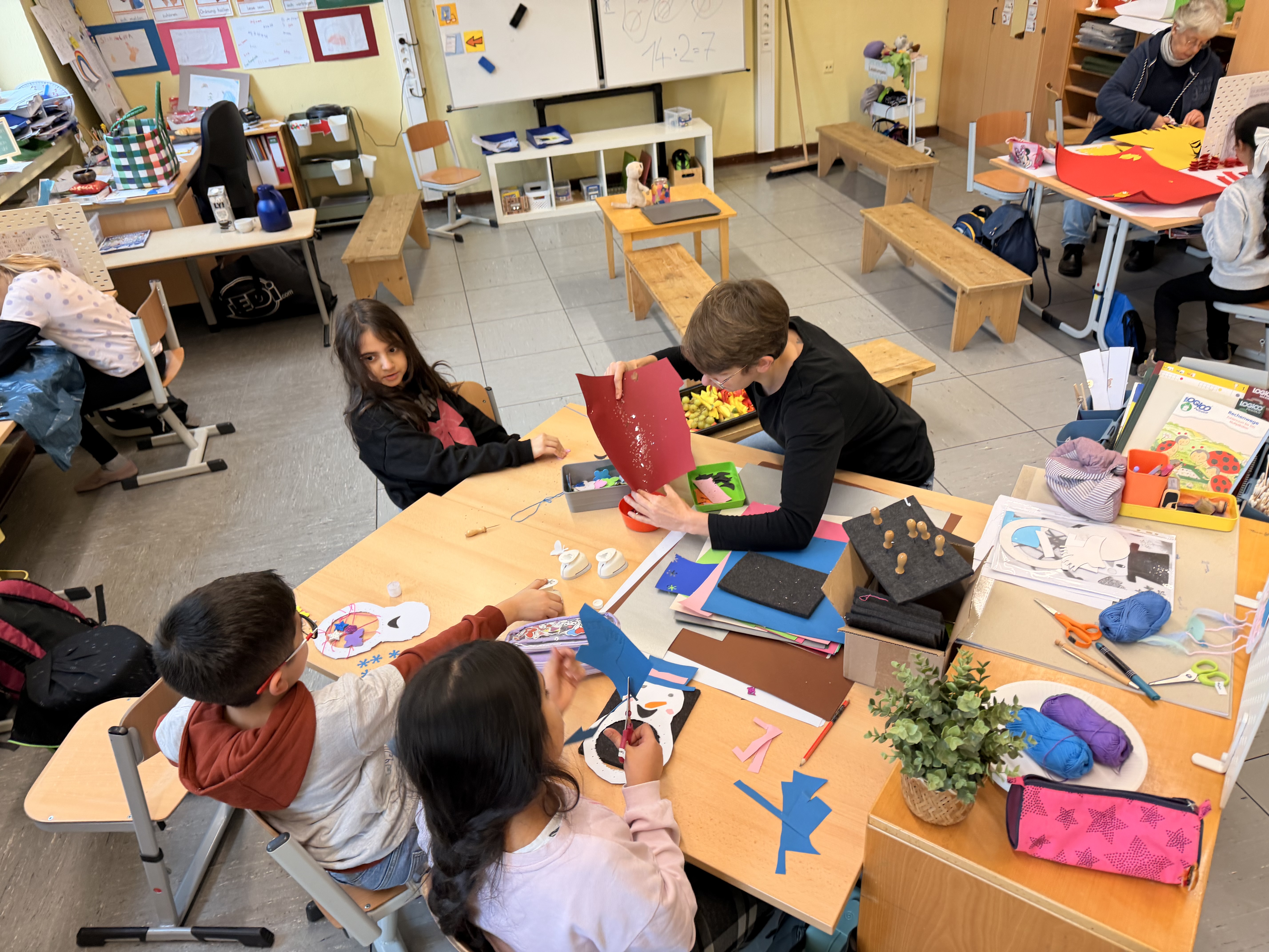 In einer herzlichen Atmosphäre wurde nicht nur gebastelt, sondern auch gelacht und diskutiert. Die helfenden Eltern und alle Bergschulkinder arbeiteten Hand in Hand, und es entfaltete sich ein lebendiger Austausch. Die Gemeinschaft wurde spürbar, und jeder Beitrag zählte.